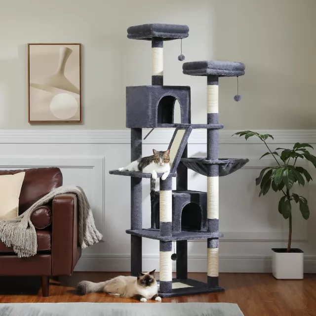 Transform your home into a feline paradise with this versatile Cat Climbing Tree, designed for large cats and active climbers. This all-in-one climbing structure, scratch board, and platform combo is crafted to entertain, challenge, and satisfy every adventurous cat’s instincts. With durable sisal scratch posts and cozy plush platforms, your cat will be drawn to scratch, lounge, and explore every tier. Whether it’s climbing, scratching, or napping, this climbing tree provides everything your cat needs to stay engaged, active, and happy—all in one beautifully designed space.