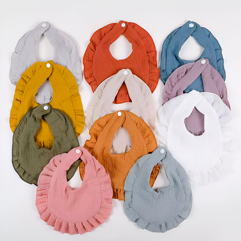 What makes this bib truly special is its attention to detail – the soft ruffles, the elegant lace trim, and the versatile solid colors. It’s not just a bib; it’s a statement piece that completes your baby’s outfit while keeping them clean and dry. Whether you’re dressing your little one for a casual day or a special occasion, this bib brings both function and flair.